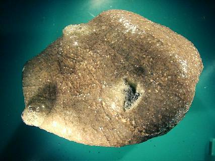 Glasxenolith aus der Sandgrube Üdersdorf: durch die vulkanische Hitze glasierte Grauwacke