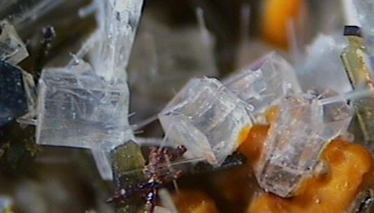 Nephelinkristalle sind in der Regel sechsseitige glasklare Prismen