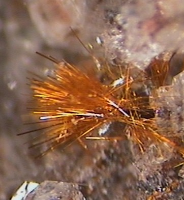 rechts daneben: frische pinselähnliche Aufspaltung von Pseudobrookit