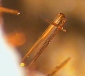 Durch Hitzeeinwirkung ist das rechte Ende angeschmolzen